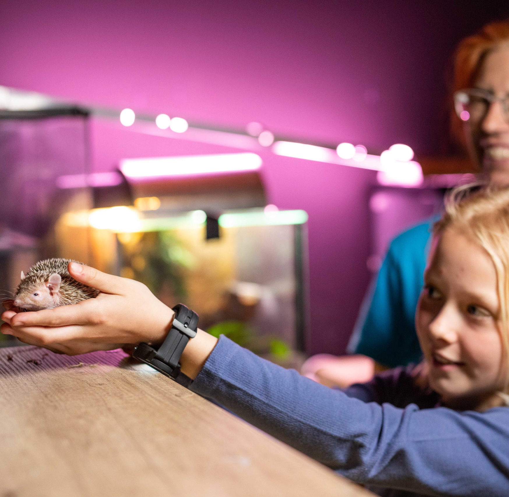 Posebej prilagojen program za vrtce in šole. Otroci spoznajo eksotične živali, z njimi rokujejo, se izobrazijo o pravilni negi in namestitvi.